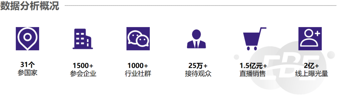 截止目前,大会共汇聚了超300位国内外专家学者及行业领袖,举办了超50场专题论坛,超300场精准型、高端型活动,累计超1500家企业参与,超1000位网红至现场直播,累计网络直播销售额超1.5亿元。